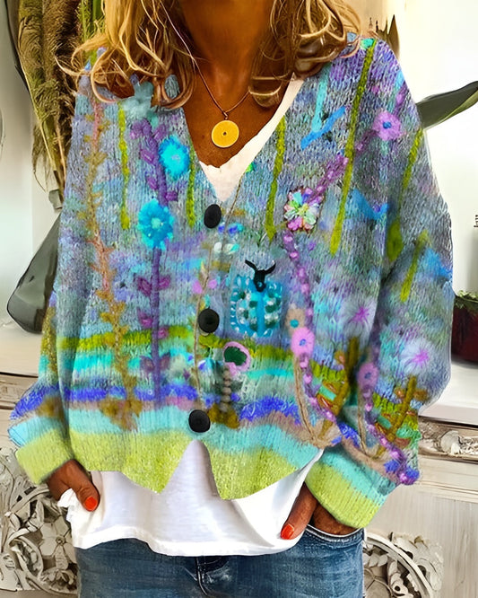 EVONNA | Cárdigan floral de punto