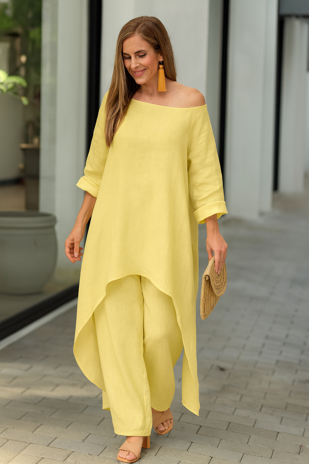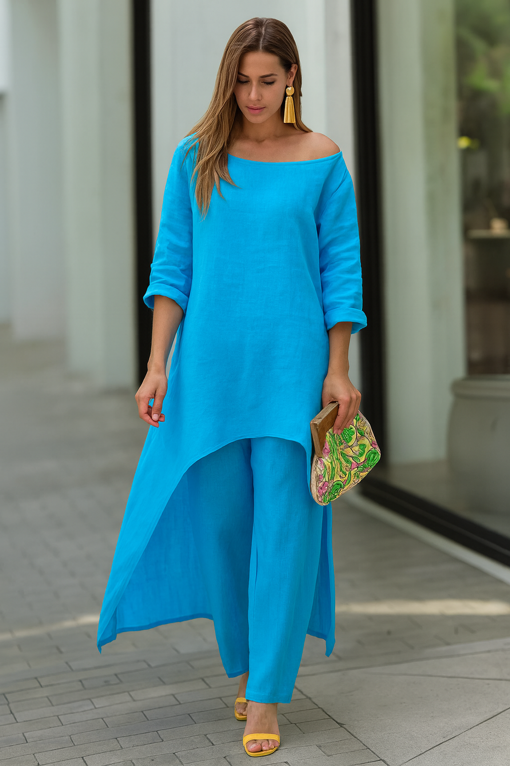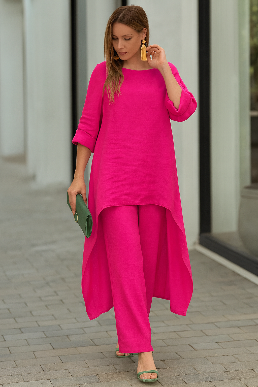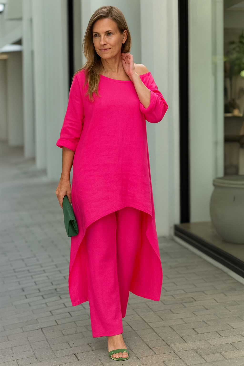 - Diseño equilibrado – la combinación de top holgado y pantalón ancho logra una silueta moderna con gran comodidad.