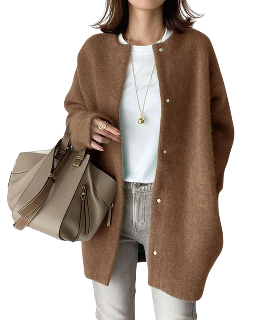 Amaya combina sencillez moderna y comodidad en un diseño refinado. Confeccionado con materiales de alta calidad, ofrece suavidad y calidez. Su ajuste relajado garantiza confort durante todo el día. Los botones frontales añaden un toque clásico y atemporal, ideal para cualquier ocasión.
