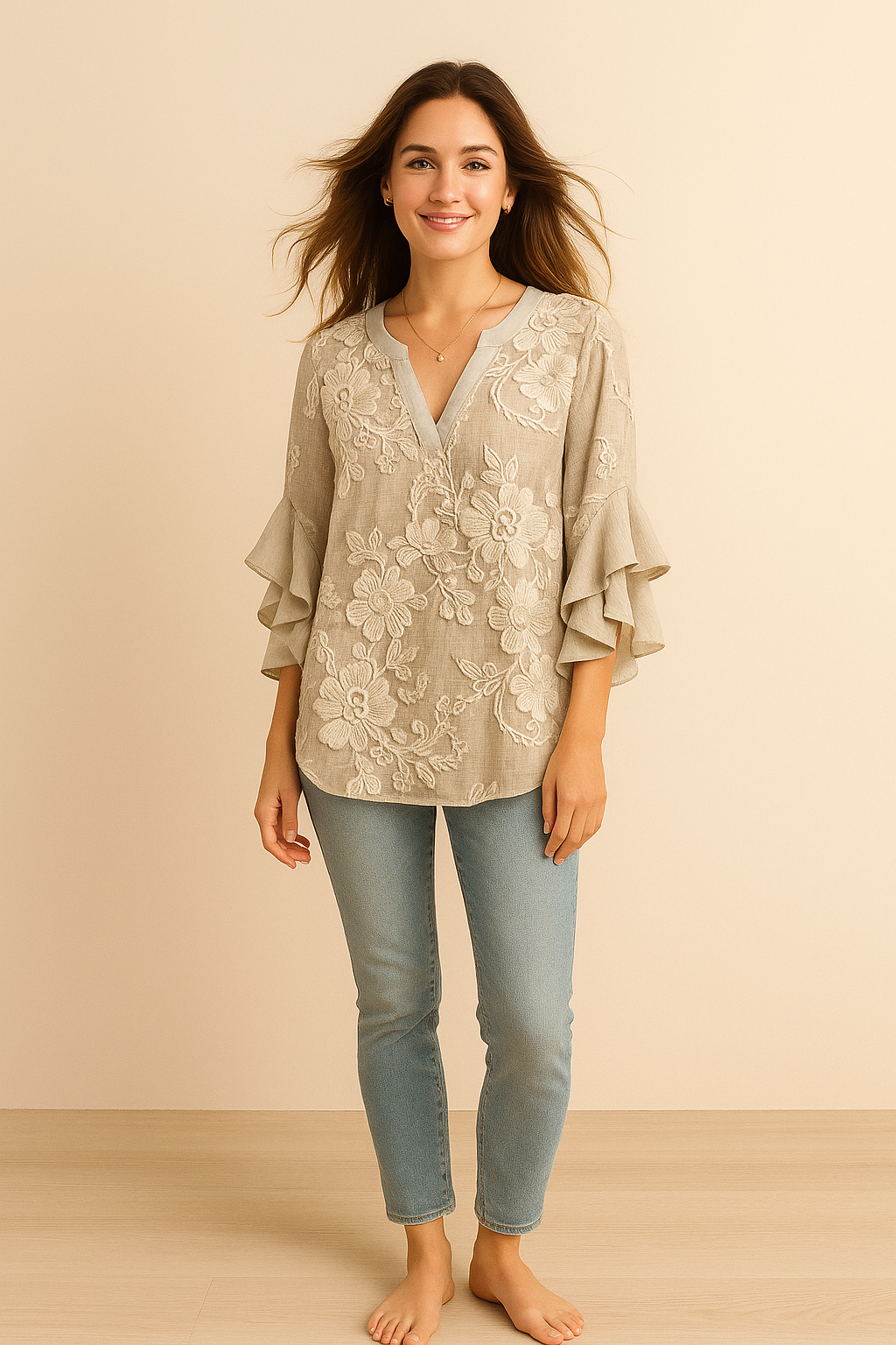 - Versatilidad elegante – Perfecta para looks casuales o eventos informales donde se busca frescura y estilo.