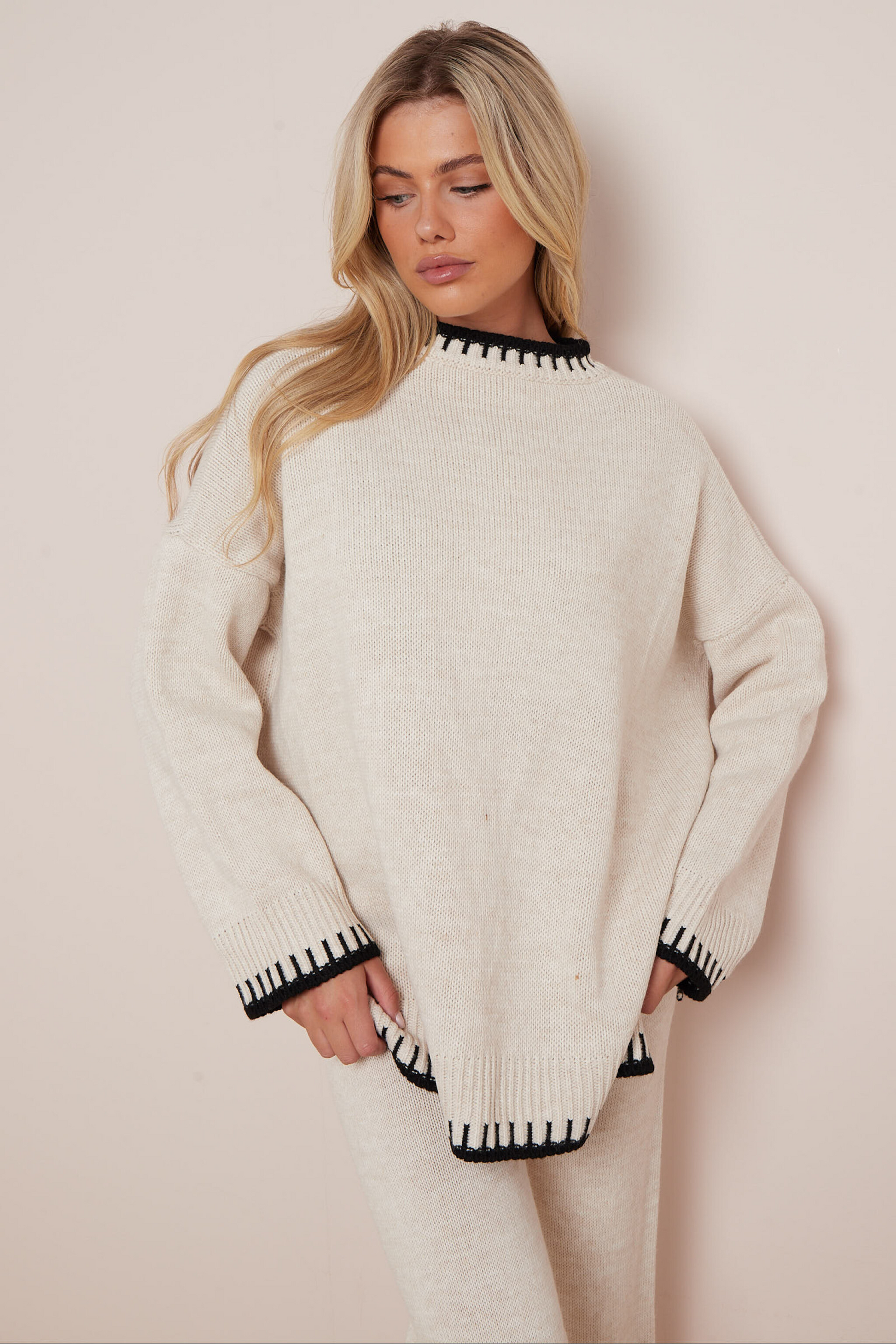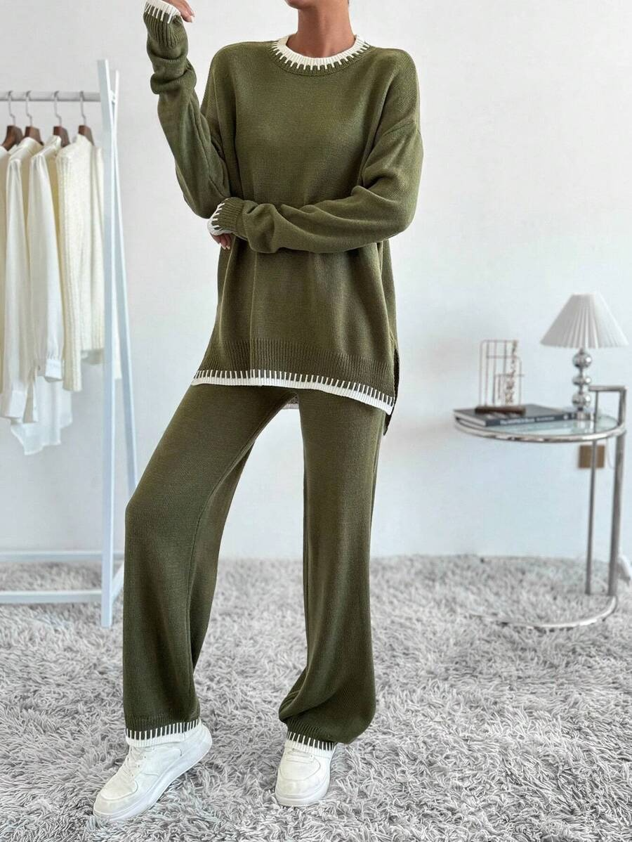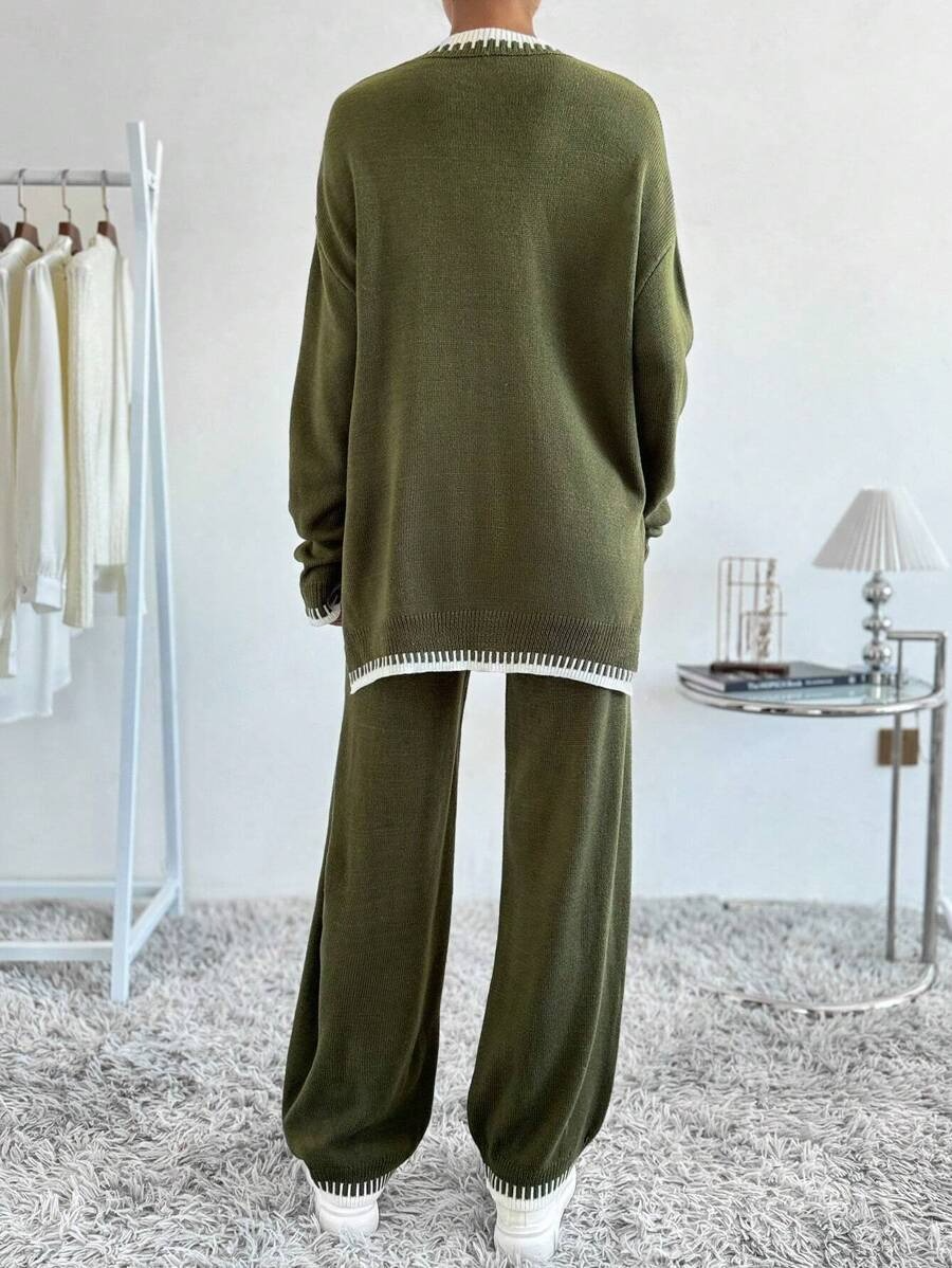 ISLA combina a la perfección confort y elegancia. Confeccionado en un tejido de punto suave y cálido, este conjunto de dos piezas incluye un suéter de corte relajado y un pantalón ajustado que estiliza la figura. Su diseño atemporal y versátil lo convierte en una opción ideal tanto para el día a día como para un look más sofisticado con los accesorios adecuados. Perfecto para quienes buscan sentirse cómodas sin renunciar al estilo.
