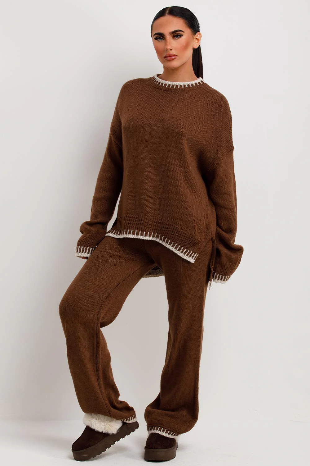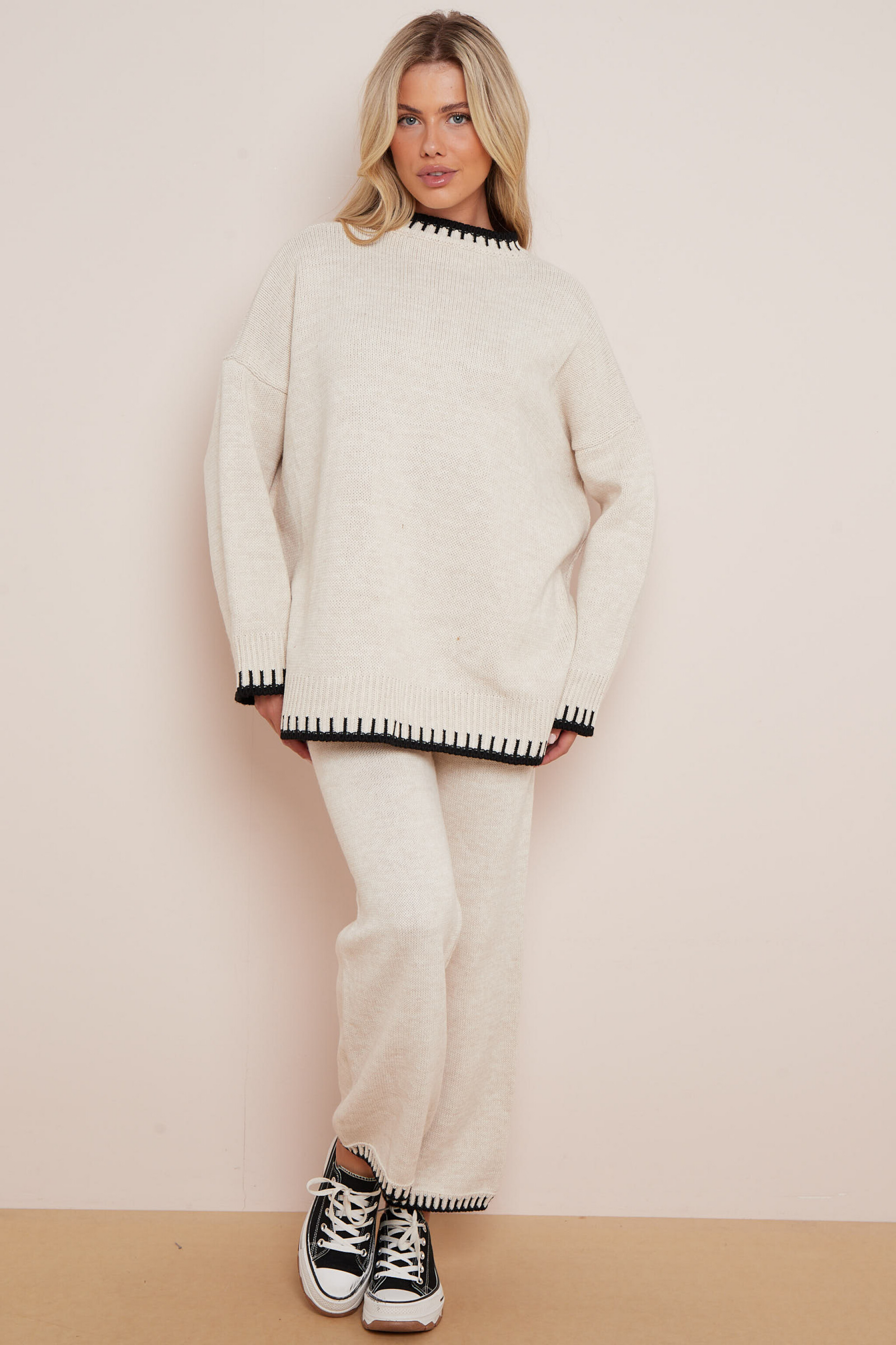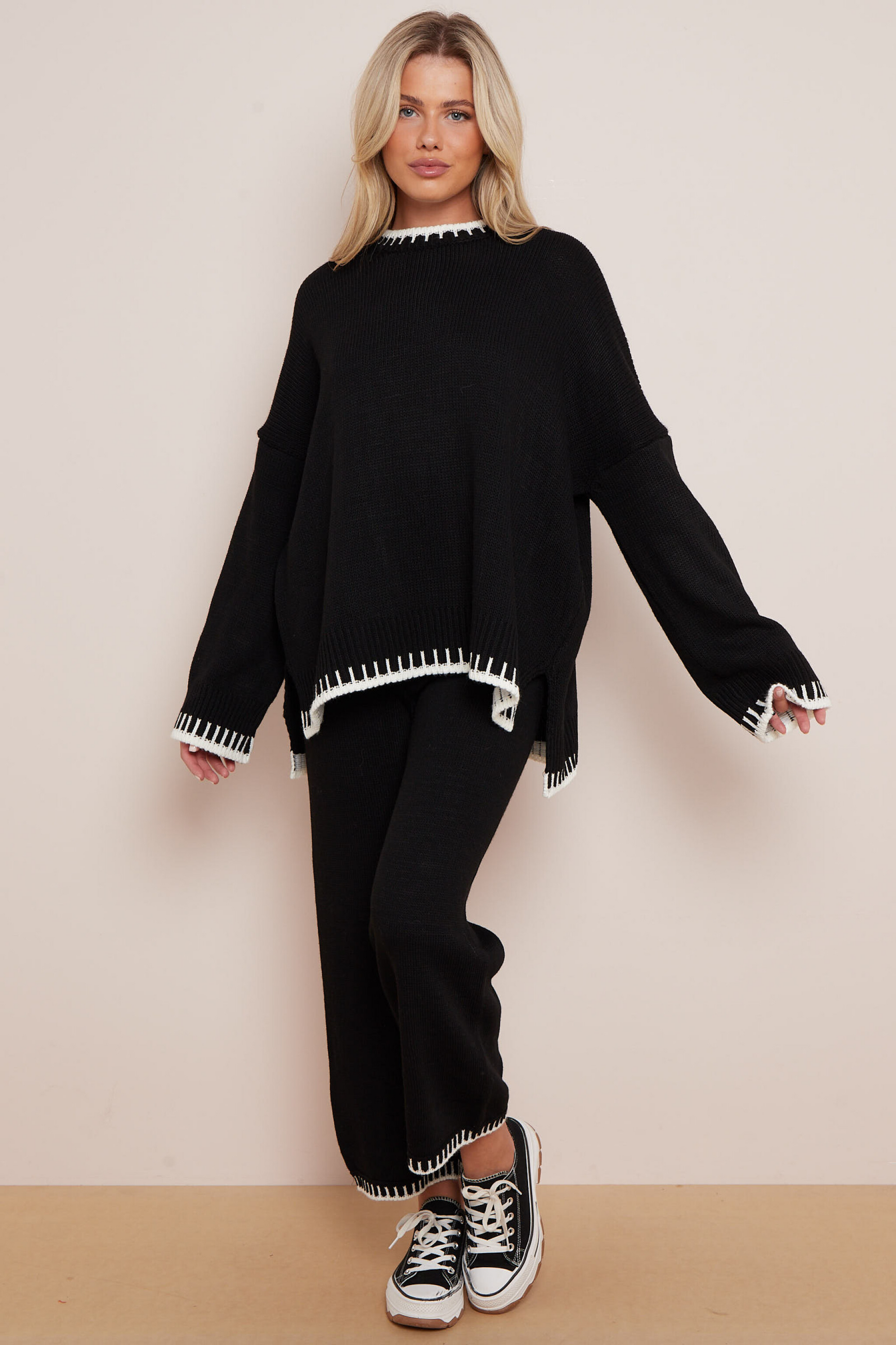 ISLA combina a la perfección confort y elegancia. Confeccionado en un tejido de punto suave y cálido, este conjunto de dos piezas incluye un suéter de corte relajado y un pantalón ajustado que estiliza la figura. Su diseño atemporal y versátil lo convierte en una opción ideal tanto para el día a día como para un look más sofisticado con los accesorios adecuados. Perfecto para quienes buscan sentirse cómodas sin renunciar al estilo.