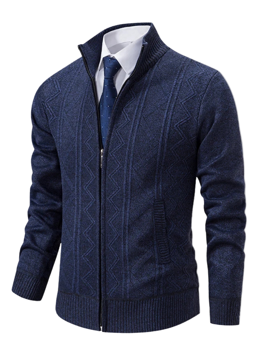 Descubre Dawson, el cárdigan con cremallera diseñado para hombres que valoran la calidez y la sofisticación. Su tejido estructurado aporta textura y profundidad sin perder sutileza, mientras que el cierre completo lo convierte en una prenda versátil para superponer con estilo. Ideal para combinar con camisas o camisetas, ofrece un equilibrio perfecto entre elegancia y comodidad.