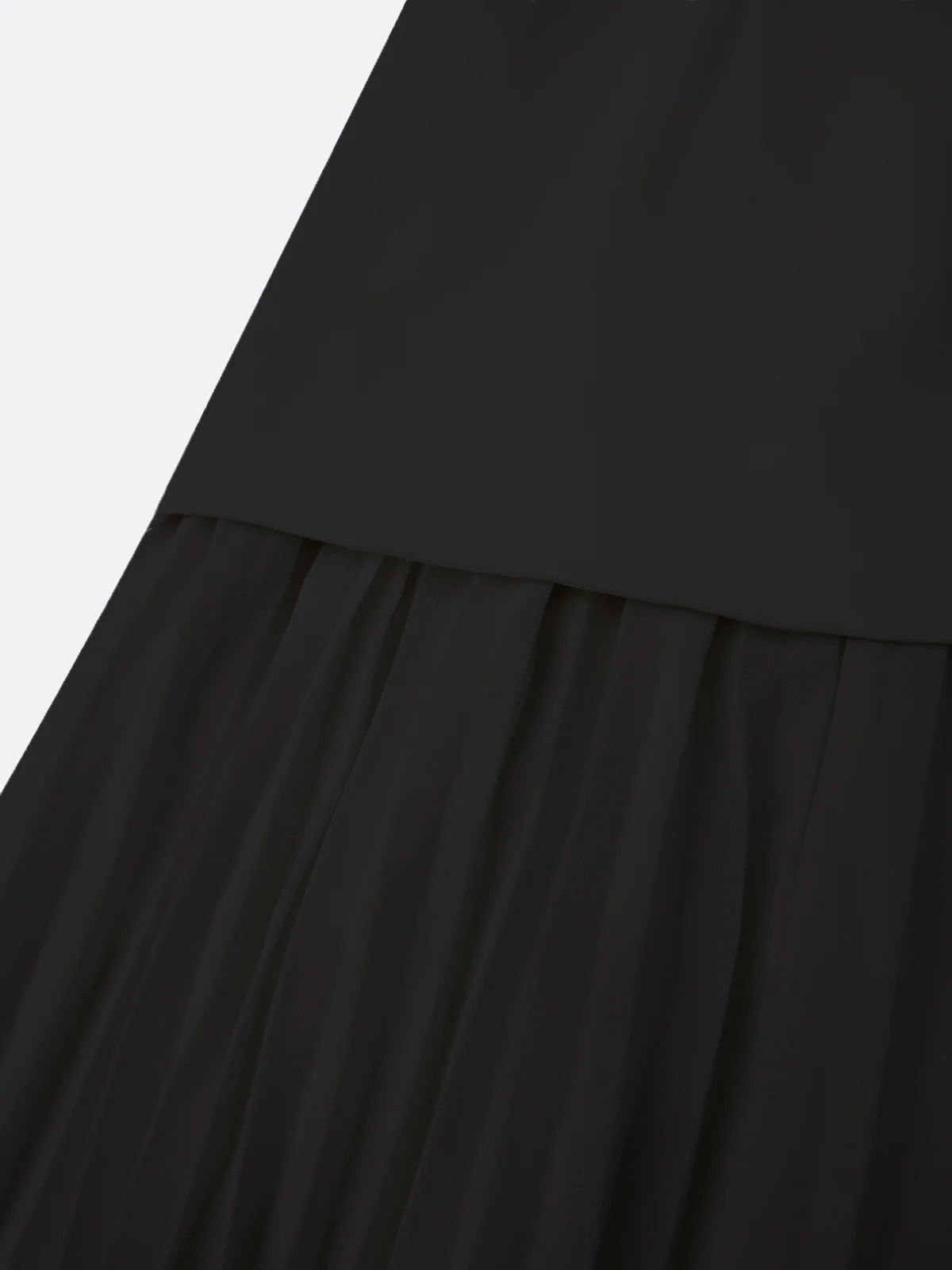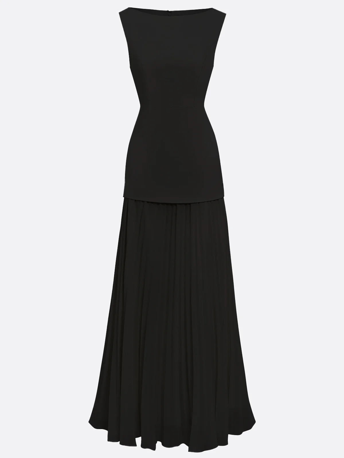 - Elegancia sobria y moderna – Línea sin mangas y pliegues diseñados para realzar cualquier figura.