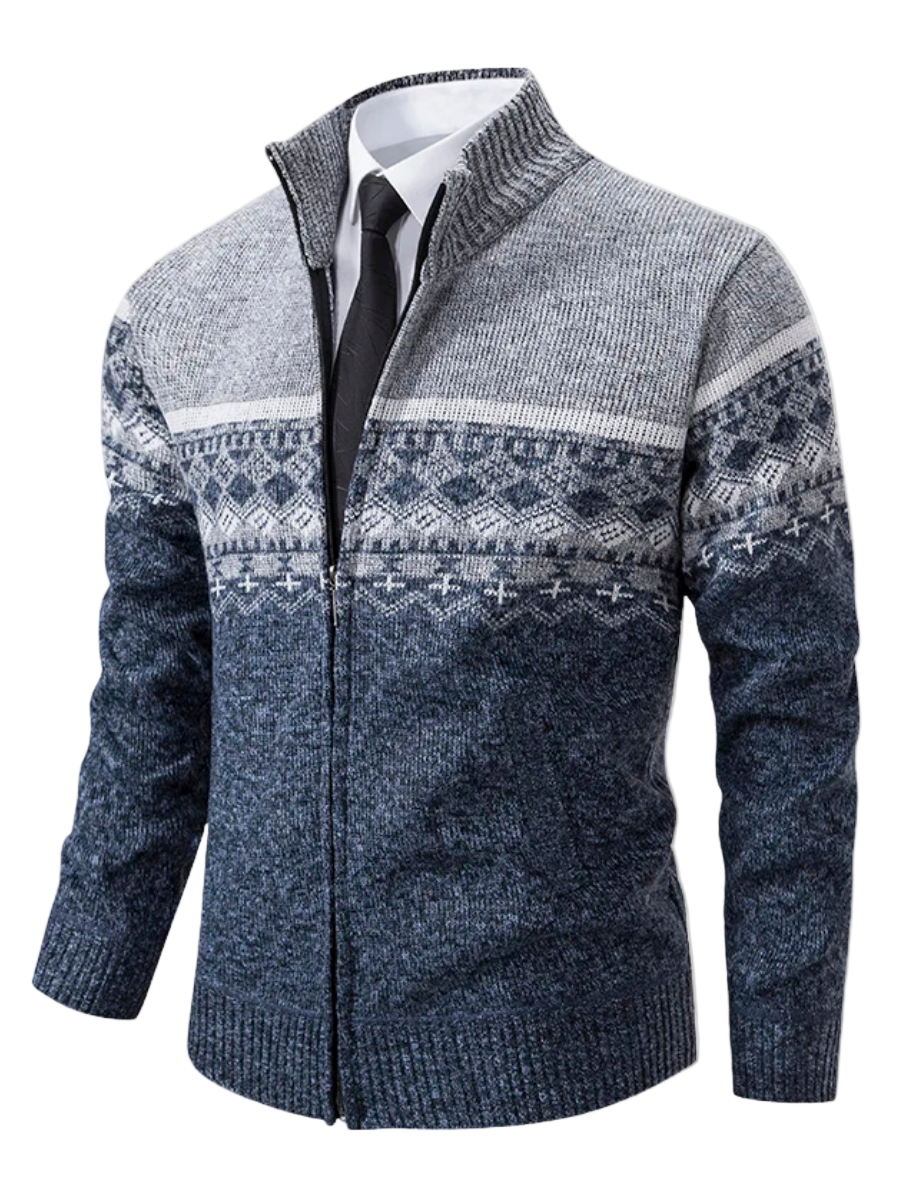 Descubre Howard, el cárdigan de punto con diseño nórdico que combina el encanto tradicional con la funcionalidad contemporánea. Su tejido cálido y suave ofrece comodidad y elegancia durante los días fríos, mientras que su cremallera completa lo hace perfecto para superponer fácilmente con camisas o camisetas. Ideal para quienes aprecian el estilo clásico con un toque moderno.