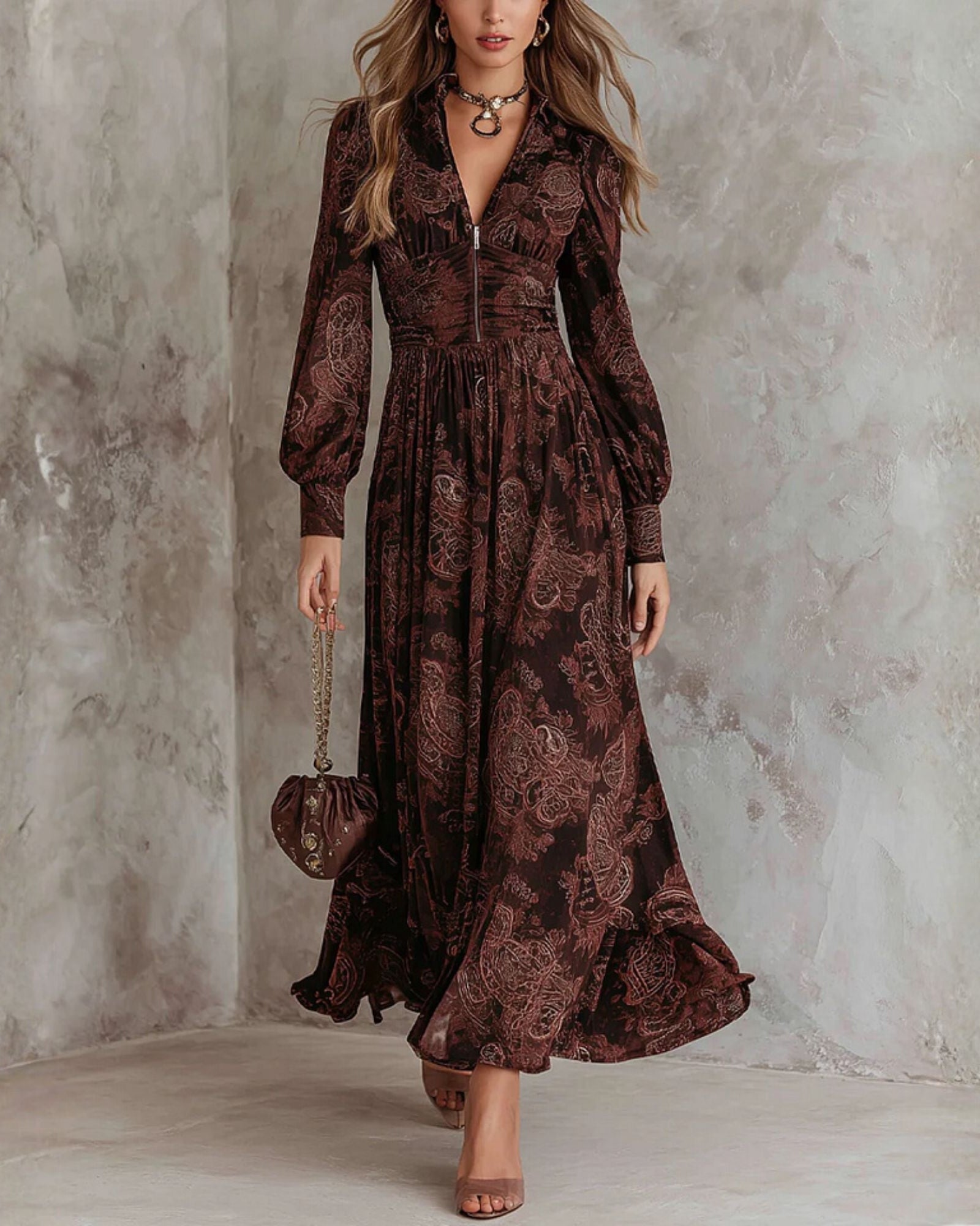 El vestido Mercedes captura la esencia del estilo bohemio con una silueta refinada y femenina. Su estampado de cachemira en tonos cálidos y su corte fluido crean un look atemporal y encantador, ideal para destacar con elegancia en cualquier ocasión. El escote en “V” y las mangas largas aportan un toque de sofisticación natural.